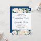 Convites Rosa branca Floral no Janto de ensaio azul Marinho