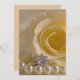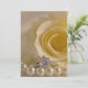 Convide convidados para a cerimônia de casamento com a elegante Rosa Branca, Pérolas e Convite para Casamento de Anéis. Estes elegantes convites de casamento florais personalizados apresentam uma fotografia floral próxima de um colar de rosa branco, colar de pérolas brancas e anel de noivado de platina de diamante redondo.
