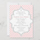 Elegante rosa, branco, chá de panela de casamento de listras de cinza. Um na moda, moderno design de padrão striped com faixas brancas e cor-de-rosa, um coração de cinza e seu texto em um quadro. Contemporâneo, mas com um olhar vintage, de certo modo. Você pode alterar o plano de fundo e a cor do texto escolhendo entre mais de 200 cores do gráfico de cores do Zazzle. Esta classe é parte de um conjunto de casamentos e é perfeita para todas as estações de casamentos: primavera, verão, outono e inverno.