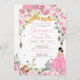 Convite de Quinceanera com papel picado dourado e acentos, lanternas mexicanas suspensas e floral em aquarela em uma combinação perfeita de rosa e branco. Este design apresenta uma menina em um vestido de quince, rodeada por gaiolas de pássaros caídas e uma mistura de borboletas coloridas e monarcas. Veja a loja para este design em várias variações, incluindo tons de pele/cor de cabelo, e sem a menina também.