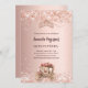 Um convite elegante e romântico da Quinceañera. Um fundo rosa de gradiente dourado decorado com falso brilho, uma princesa tiara e carruagem. Personalize e adicione um nome e detalhes da parte.