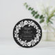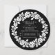 Rosa, convite de casamento moderno preto e branco. Um design contemporâneo que mostra uma coroa branca vintage sobre fundo preto.