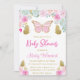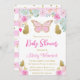 Convites Rosa. Chá de fraldas de borboleta azul e Dourada
