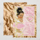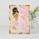 Este é um convite para chás de fraldas moderno e elegante Fitas e Arcos Diamantes e Pérolas Rapariga Americana Africana vestindo festa rosa-pincel e vestido de festa dourada. Cabelo de Tom Celular Med: Corvo Afro