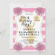 O aspecto cor-de-rosa claro nas listras rosa-quente é o fundo perfeito para nossos convites de festa de aniversário-12-colchete, cheerleader-aplausos-tema-design. Possui uma silhueta dourada de um cheerleader na frente com pom poms levantados e o tema é levado para trás com pom cor-de-rosa e um touro dourado "animado". Simplesmente personalize com os detalhes da celebração da sua filha. Excelente para qualquer idade para entusiastas alegres.