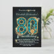 Convide convidados para uma celebração de marco com este elegante Convite de Aniversário de 80. A design apresenta um magnífico "80" esculpido de joias lacrimogêneas, enquadradas por uma cascata de diamantes espumantes. Um rosa delicado e folhas enfeitadas pelo cristal amolecem o segundo dígito, acrescentando um toque de elegância real. Contra um fundo sofisticado, baseado em estrelas, o texto personalizado destaca-se lindamente, criando uma manutenção que estabelece o palco para uma celebração inesquecível.