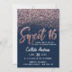 Este design de convite exclusivo e bonito do Sweet 16 apresenta faux impresso, brilhante e cintilante, rosa-ouro personalizado, com pinceladas de mão e brilho espalhado em um efeito de gradiente ombre sobre um fundo azul marinho. Na parte traseira, há uma grande imagem, o número 16. Este elegante, na moda, e design de arte é perfeito para a moderna e glamourosa aniversariante. Faça a pop de eventos da sua filha brilhar com esta opção de moda e moda para a festa dela. Clique no botão "detalhes" para personalizá-lo com suas informações. ***NOTA DE DESIGN IMPORTANTE: Para qualquer solicitação de design personalizada, como solicitações de correspondência de produtos, alterações de cor, mudanças de posicionamento ou qualquer outra solicitação de alteração, clique no botão "CONTACT" ou envie um e-mail ao designer diretamente em lafemme.art@gmail.com. Você pode até enviar um e-mail para ela solicitando um design completamente personalizado e novo.