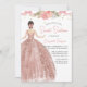 Rosa Chic Floral Dourado Vestido Doce Doce 16 Convite de Aniversário