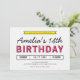Convite de aniversário moderno com a palavra "Aniversário" em cor-de-rosa contra uma cinza diagonal de fundo que é perfeita para qualquer idade. O Convite de Aniversário inclui um lado correspondente, rosa e amarelo, nas costas. Veja outros convites de aniversário aqui https://www.zazzle.com/collections/childrens_birthday_invitation-119229052564655496?rf=238364477188679314 e aqui https://www.zazzle.com/collections/birthday_invitations_for_adults-119400127857134028?rf=238364477188679314 Personalize-o substituindo o texto do marcador de posição para adicionar suas informações. Para obter mais opções, clique no botão "Personalizar". *Observe que a Marca d'água do Zazzle que aparece na visualização de zoom NÃO aparecerá no produto impresso final. © Rosewood e Citrus