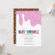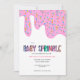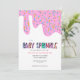 Convites de Chá de Bebê Rosa Doce com Glacê e Pingos de Chocolate e confeitos nas costas.