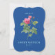 Apresentando nosso Convite de festas 16, uma combinação perfeita de romance eterno e charme vintage. A combinação do fundo do marinho na frente e do azul pastel claro nas costas estabelece um tom sonhador, enfeitado com uma delicada rosa rosa, criando uma atmosfera encantadora para sua celebração especial. O texto personalizável permite adicionar um toque pessoal e, para sua conveniência, os detalhes essenciais podem ser editados no verso.