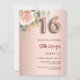Um convite moderno, na moda e glamouroso para uma festa de aniversário Doce 16, 16. Um fundo rosa de gradiente dourado decorado com um rosa dourado e cor-de-rosa pincelada. O nome é escrito com um moderno e escuro, rosa dourado, escrito com letra de estilo manuscrito. Personalize e adicione os detalhes da sua festa. O número 16 é escrito com uma fonte de estilo de balão, script.