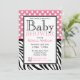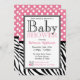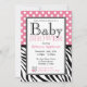 Convites bonitos e à moda do chá de fraldas com as bolinhas brancas sobre o rosa na parte superior e nas listras pretas & brancas da zebra na parte inferior. Personalize com os detalhes do chá Mamãe-à-estar e escolha seu tipo de papel demasiado!