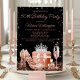 As mulheres convite de aniversário rosa de ouro com calçados bonito de alto salto de rosa, garrafa de perfume, vidro de champanhe, coroa e presentes sobre um belo fundo brilhante preto. Este convite de aniversário rosa dourado feminino é facilmente personalizado para o seu evento simplesmente adicionando os detalhes do seu evento. Você pode alterar a cor do plano de fundo e a cor do texto.