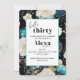 Rosas e bolhas iridescentes a preto na tinta alcoólica, abstrato de uma festa de aniversário de 30 anos. Todo texto é editável.