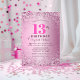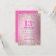 Você vai adorar este convite de aniversário bonito e feminino. Ele apresenta uma imagem brilhante rosa dourada com um centro cor-de-rosa suave e um grande número rosa brilhante que complementa a parte de trás do convite. É fácil adicionar seus detalhes pessoais.