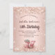 Um fundo rosa de gradiente dourado decorado com confete e uma carruagem de vintagem romântica. Personalize e adicione seu nome, idade, detalhes da festa.