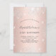 Um convite moderno, na moda e glamouroso para uma festa de aniversário de 21 ruas (ou qualquer idade). Um fundo metálico rosa dourado falso com aparência suja de poeira brilhante prateada. O nome é escrito com um moderno script de estilo colorido de cinzas. Personalize e adicione os detalhes da sua festa.