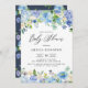 Convide convidados para o seu evento com este convite de chá de fraldas personalizável. Apresenta terras florais de cor aquosa de rosas azuis, roxas e brancas, anêmonas e híbridos. Personalize este convite para chás de fraldas florais adicionando os detalhes do seu evento. Este convite de chá de fraldas de hydrangea é perfeito para chás de fraldas de primavera e inverno.