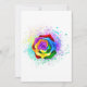 Rosa grande e florescente com pétalas arco-íris sobre fundo branco, pintadas com pedaços de tinta colorida e brilhante. 3d