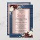 Rosas de borgonha em rosa dourado e fundo de textura de madeira azul de marinho.