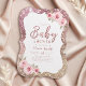 Convites Rosa de brilho dourado e chá de fraldas floral