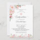 Linda moça floral de aquarela Confirmação convite com delicado arranjo floral no canto superior esquerdo e campo de flores no fundo do cartão, com flores em delicados tons cor-de-rosa pincelados com detalhes da brilha do ouro rosa e verde-menta. Área na parte superior do verso da Bíblia. O mesmo design também está disponível sem o verso do bíblia. O cartão está de volta em tom verde de menta com detalhes florais no fundo. Convite com seção para detalhes de "Cerimônia" e "Recepção". Parte do nosso casamento e da coleção de eventos.