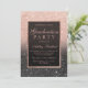 Celebre a engrenagem com este moderno, bonito chic e elegante chá glitter rosa de ouro mbre com festa de formatura preto de blocos coloridos convite com rosa dourado ombre padrão que desaparece sobre fundo brilhante preto e elegante quadro de ouro perfeito para uma festa de formatura princesa, perfeita para ela, a moda que ama o padrão moderno e o glam