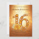 Celebrar um marco com este convite luminoso do Sweet 16, um design deslumbrante que instantaneamente cativa. O "16" é a estrela, trabalhada meticulosamente a partir de um mosaico de gemas âmbar e pérolas clássicas. Um belo rosa de ouro com delicadas e brilhantes folhas florescendo na base, acrescentando um toque sofisticado. O plano de fundo quente e bokeh cria um brilho comemorativo, garantindo que todos os detalhes personalizados do seu partido — do nome às informações RSVP — sejam apresentados em estilo radiante.