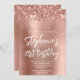 Um estilo moderno e glamouroso, estilo manuscrito ousado, aniversário de 21 anos convite para ela. Você pode personalizar este convite para outra celebração de aniversário de marco. O recurso de arte digital falha a brilha do rosa dourada cintilante com faíscas extras contra uma imagem gráfica digital de folha falsa. Todos os elementos brilhantes neste design feminino moderno são gráficos digitais que impressão gostam de uma foto.