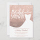 Chá brilhante, moderno, bonito e elegante, de rosa-ouro, com chá de panela rústico de blocos coloridos de madeira marrom, convite de festas com padrão rosa-ouro ombre desaparecendo sobre um fundo de madeira marrom rústica com um elegante vestido branco de casamento .Perfeito para um chá de panela princesa, perfeito para ela, a moda que ama padrões modernos e brilho