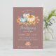 Rústica Ação de Graças convites com a cor d'água, outono, arte floral de abóbora sobre fundo de rosa de cobre mauve com texto amarelo e azul.