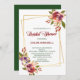 Este é um bonito chá de panela floral para qualquer estação, incluindo o inverno. Apresenta uma elegante trama dupla de deslocamento de ouro, com buquetes de rosa azul e vermelho de marsala embelezados em ouro nos cantos superior direito e inferior esquerdo. Seu texto personalizado está em ouro escuro no centro. A parte de trás do convite é verde escuro consistente. Certifique-se de ver os produtos correspondentes em nossa loja.