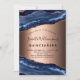 Um convite moderno, na moda e glamouroso para uma Quinceañera, festa de aniversário 15. Ouro azul e rosa, fundo de mármore. O nome é escrito com um moderno estilo escrito à mão. Personalize e adicione os detalhes da sua festa.