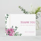 Lilás botânico, rosa, ouro e flores rosa de cor verde-d-água escura Casamento Obrigado a convites. É perfeito para qualquer garota refinada e sofisticada ou qualquer pessoa. Este design é ideal para um evento de festa elegante e de tendências. Personalize este design com sua mensagem e informações personalizadas. Todas as designs são impressas.