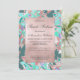 Convites Rosa de ouro verde-téal - floral Sweet 16