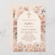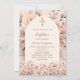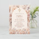 Um convite moderno, na moda e feminino para um batismo. Creme, fundo colorido de pêssego, estrutura de arco, decorada com flores creme. Personalize e adicione seu nome e os detalhes.