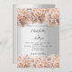 Um convite moderno, na moda e romântico para um casamento. Um fundo de aspecto fino prateado, decorado com flores rosa, de cor suave e leve. Personalize e adicione seus nomes e detalhes.