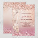 Para uma elegante Quinceañera, 15. Um fundo rosa dourado e gradiente rosa. Decorado com rosa dourado, poeira brilhante rosa e calçados de bailarina. Personalize e adicione um nome, idade/texto e detalhes da parte. O nome é escrito com um script de estilo manuscrito