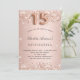 Para uma elegante Quinceañera, 15 festa de aniversário. Um fundo de gradiente rosa ouro. Decorado com rosa dourado falso poeira brilhante. Personalize e adicione um nome e detalhes da parte. O nome é escrito com um script de estilo manuscrito. O número 15 é escrito com uma fonte no estilo do balão.