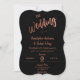 Crie um convite personalizado e esplêndido, chique e minimalista para seu casamento ou aniversário. Este convite para o casamento apresenta um roteiro de caligrafia espaçoso e bonito escrevendo em letra falsa de folha de ouro rosa com fundo preto no quadro. Você pode personalizá-lo facilmente com seu próprio texto e personalizá-lo de acordo com o seu gosto. Por favor, note: "-The- Wedding" e a trabalho de arte do anel não podem ser editadas. Nota complementar: O rosa de folha de ouro é um efeito de folha de ouro falso rosa. Não é a folha de ouro de rosa a quente.