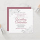 Este belo convite para o casamento apresenta um simples, mas elegante design de rosa poeirento ou mauve e texto de cinza sobre fundo branco com folhas florais de folha de prata ou filigrana nos cantos. Bem-vindos seus convidados para compartilhar seu dia especial de celebração de casamento com esses convites lindos.