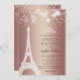 Convites Rosa de torre Eiffel com brilho Dourado 16