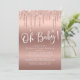Comemore a futura mãe a ser de longa distância com um chá de fraldas virtual online. Este elegante e luxuoso convite de chá de fraldas neutro apresenta brilho de rosa dourado, gotejando do topo e "Oh Baby!" em um roteiro branco na moda, embaixo, contra um fundo de rosa. Você pode personalizar facilmente com os detalhes do chá on-line, incluindo um link de acesso on-line, informações do registro, onde enviar cartões e presentes ou a opção de abrir on-line e enviar posteriormente, e onde obter mais informações.