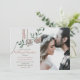 Celebre o seu amor com este convite de casamento fotográfico romântico e minimalista. Com um monograma personalizado no topo, flores suaves em rosa poeirado e folhagens em verde pastel, este design moderno-boho equilibra elegância e simplicidade. Uma foto tamanho real do casal adiciona um toque pessoal e atemporal. Perfeito para casamentos em tons neutros, primavera ou pastel com uma estética suave e sofisticada. Personalize facilmente os nomes, detalhes do casamento e foto para torná-lo único.