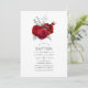 Rosas de cor vermelha quentes convite para batismo com acentos de folha de prata.