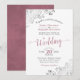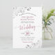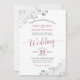 Este belo convite para o casamento apresenta um design simples, mas elegante, com um roteiro de lacy, rosa poeirento ou caligrafia colorida em fundo branco e um filigre de folha de folhas de cinza prateada nos cantos. A formulação é formal, mas a disposição é moderna e na moda.