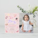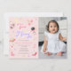 Este convite de aniversário de espaço apresenta texto retrógrado da década de 70, cores rosa e roxo e ilustrações de espaço. As ilustrações são planetas, estrelas e foguetes. As costas são galáxias rosadas, fazer este o convite perfeito para celebrar o seu pequeno astronauta.