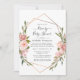 Empurre a unidade de rosa de água cor rosa e rosa dourada através de convite de noiva ou chá de fraldas com uma estrutura geométrica dourada.