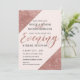 Cantos de sequenciação de rosa elegantes, quentes e glamourosos falidos impressos e script de rosa ouro em um fundo rosa claro e cor-de-rosa claro, convites para recepção de casamento noturna. Este design clássico e sofisticado é perfeito para o casal de competição de tendências e na moda. Personalize com sua própria mensagem na frente, assim como um monograma personalizado inicial no verso. Todas as impressão de fotos.